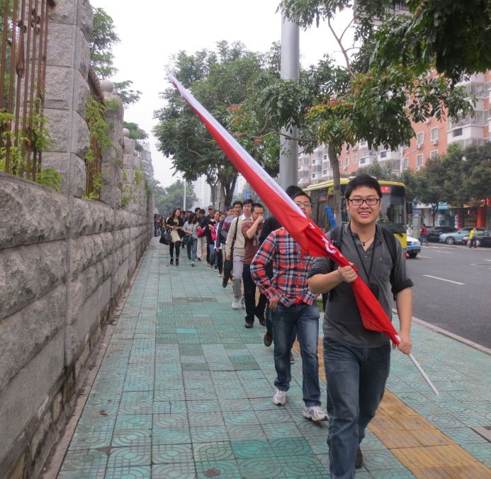 (同事们一路有说有笑)