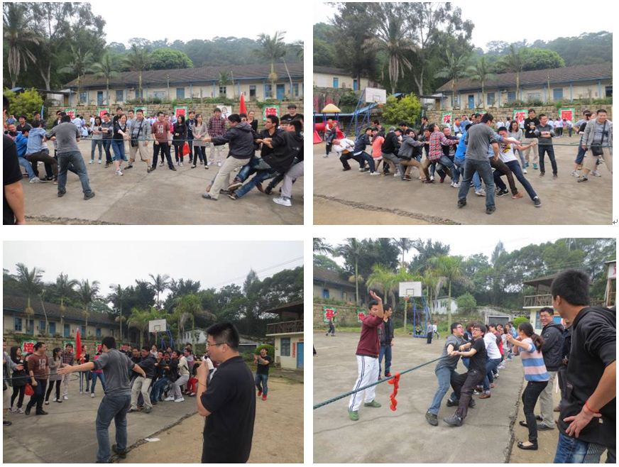 首先开始的是拔河比赛。同事们分成了4组,每组15~20人左右。每2组比赛胜出的小组参加决赛,决出冠亚军。在拔河比赛时,同事们使出了浑身力气,你争我抢互不相让,表现出了绝不服输的竞争意识。