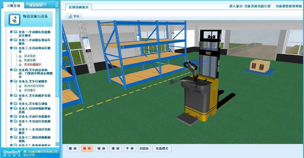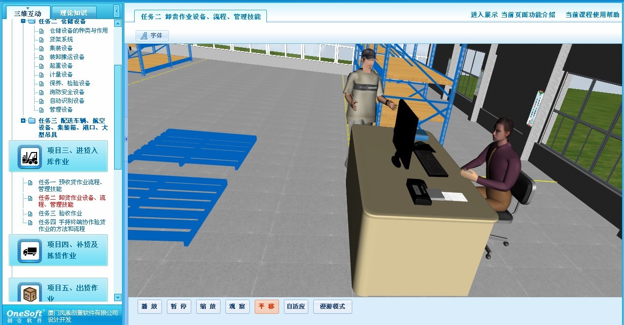 1、逼真的物流设施设备模型和运作环境;